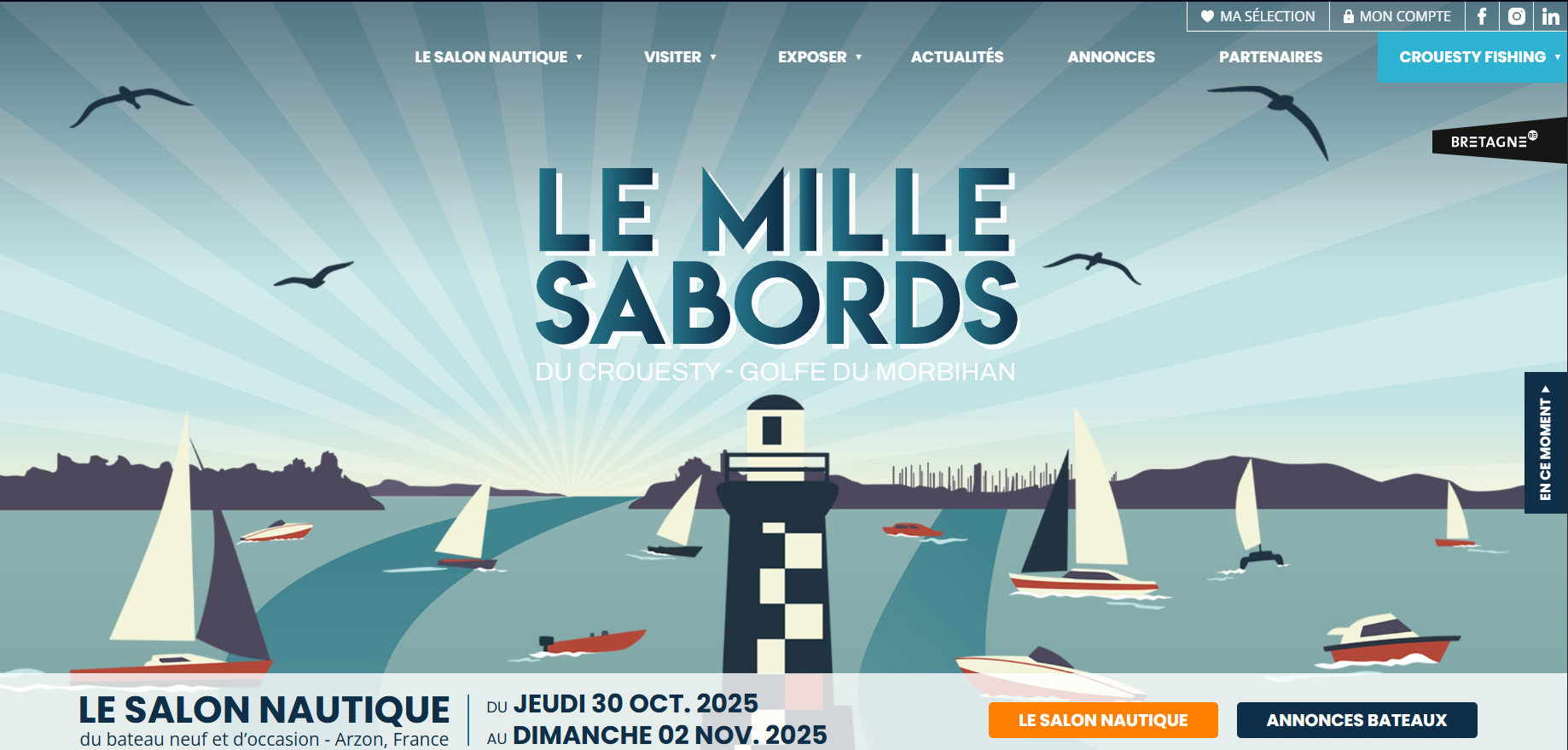 Du 30 octobre au 2 novembre 2025, le Port du Crouesty à Arzon accueillera la 41ᵉ édition du salon du bateau d’occasion Le Mille Sabords, le plus grand salon du bateau d’occasion en Europe :